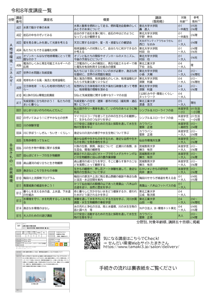 令和8年度せんだい環境学習講座メニュー一覧 ※画像をクリックしてください。